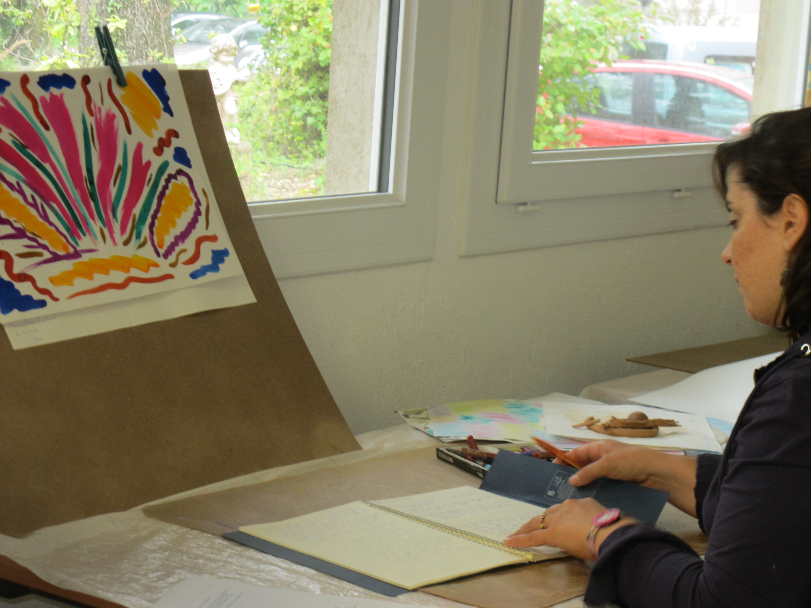 Elle se complète par une analyse écrite : là encore, soit une sensation particulière, soit le cheminement pendant l’expression (quand il y a plusieurs réalisations), soit la manière de procéder, sont autant de matériaux qui viennent nous éclairer sur soi ou sur la manière de se vivre.