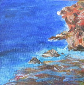 2. Ces peintures sont belles. Et quelles que soit l’état de la mer et aussi du ciel, les rochers émergés restent émergés. Cela me parle des certitudes et des évidences.