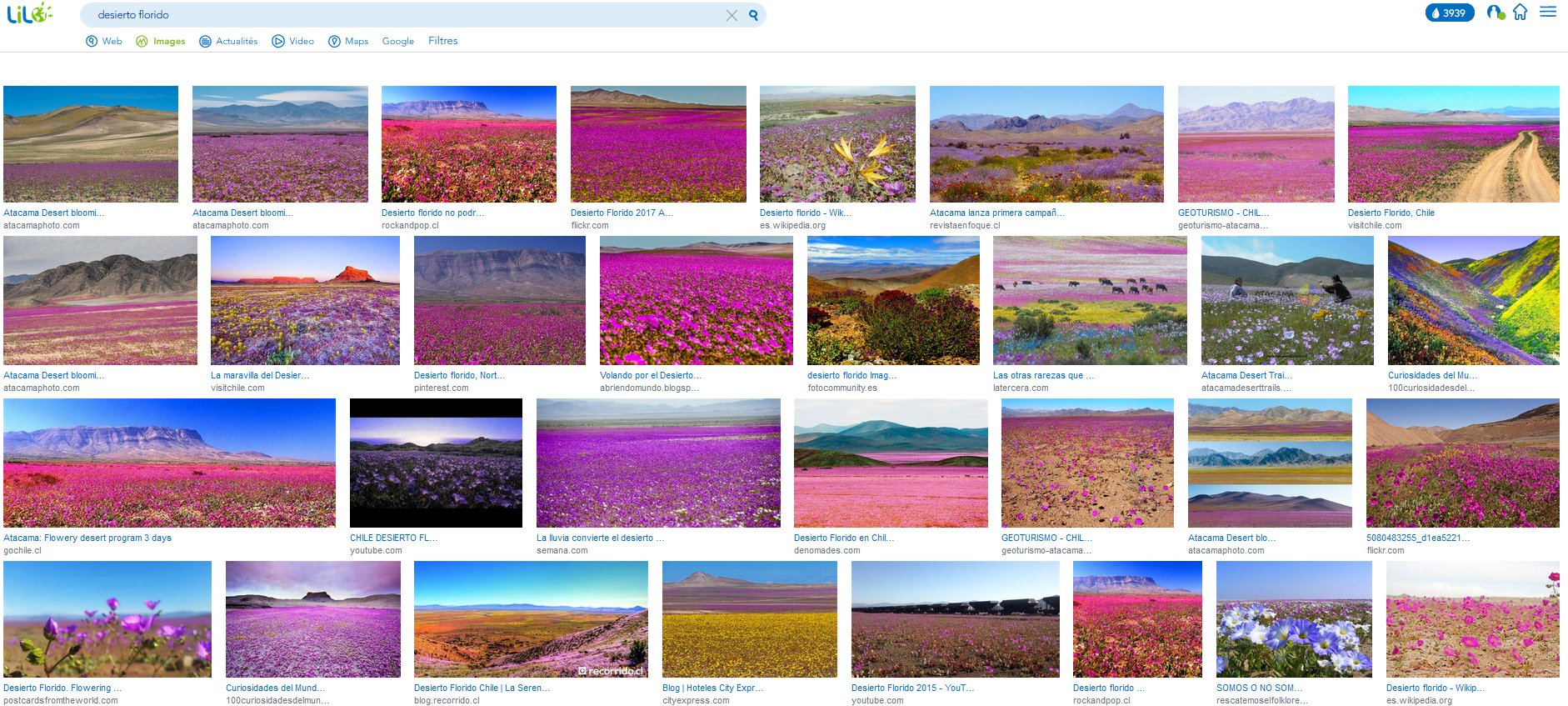 Après avoir lu cet article jusqu’au bout (la suite est passionnante, bien sûr!), n’hésitez pas à taper « desierto florido » (« désert fleuri », en espagnol) sur un moteur de recherche, comme ci-dessous sur www.lilo.org.