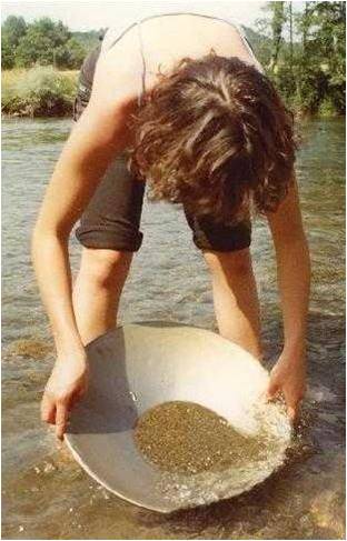 Alors, l’orpailleur recommence sans cesse ; jusqu’à ce que vous preniez vous même « la batée » (le récipient de la photo).