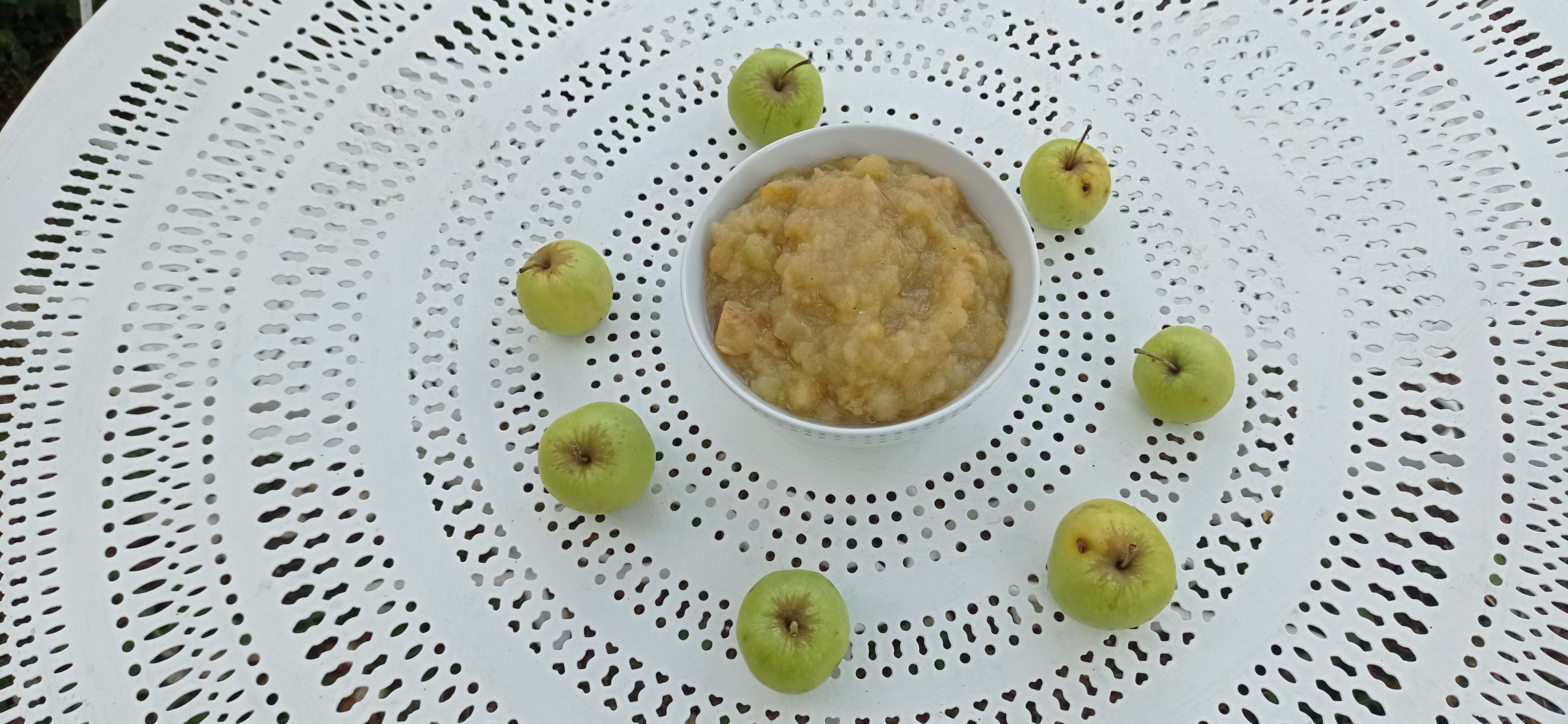 Le pommier de mon jardin a énormément donné cette année, et je me trouve devant une montagne de petites pommes à ramasser … plus qu’il ne m’en faut.