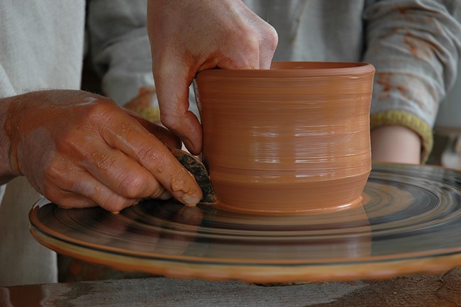 Mon maître-artisan en poterie appelait ça « La belle ouvrage ». Chez lui, sur un tour à pieds, toutes antennes en éveil, j’ai appris à bien tourner, attentive en toute ma personne et veillant à ne pas imprimer de gestes parasites au travail de mes mains.