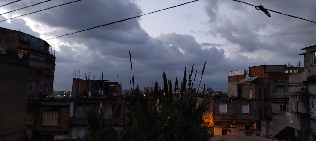 Au tout petit matin, nos maisons inachevées abritent encore leurs familles au repos. Immobiles, ombreuses et lourdes, certaines dressent leurs ferraillages vers plus tard, en attente d’un autre étage à construire. D’autres effleurent la course puissante des nuages dans le ciel zébré de fils électriques. Toute seule, une touffe de roseaux pousse et pointe ses fuseaux. Et là, petite, fidèle au milieu des murs cimentés, une lumière veille au milieu des maisons. Elle attend le jour, et elle dit l’espérance, au-delà de toute préoccupation et de toute vicissitude…
