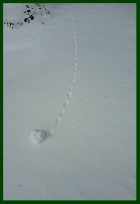 3. Dans cette neige blanche immaculée, il y a une trace faite par une petite boule, elle me fait signe, je devine le mouvement.