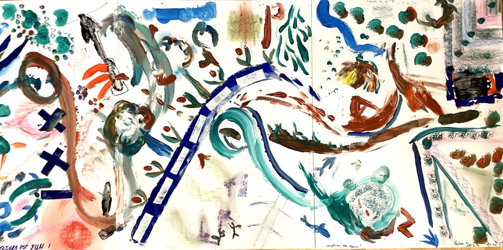Nous avons regardé nos forces vives et ce fut un émerveillement de découvrir le monde intérieur de chacun.e dans ses couleurs, dans ses formes, ses matériaux et dans son mystère.