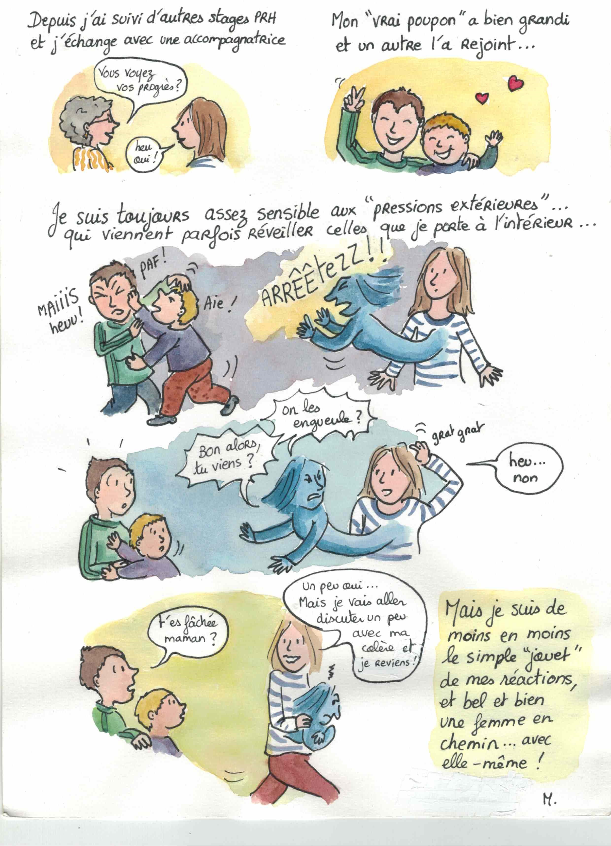 Nous terminons la publication d’une BD de Marie Fernandez qui nous confie son expérience d’avancée dans la gestion de ses émotions.