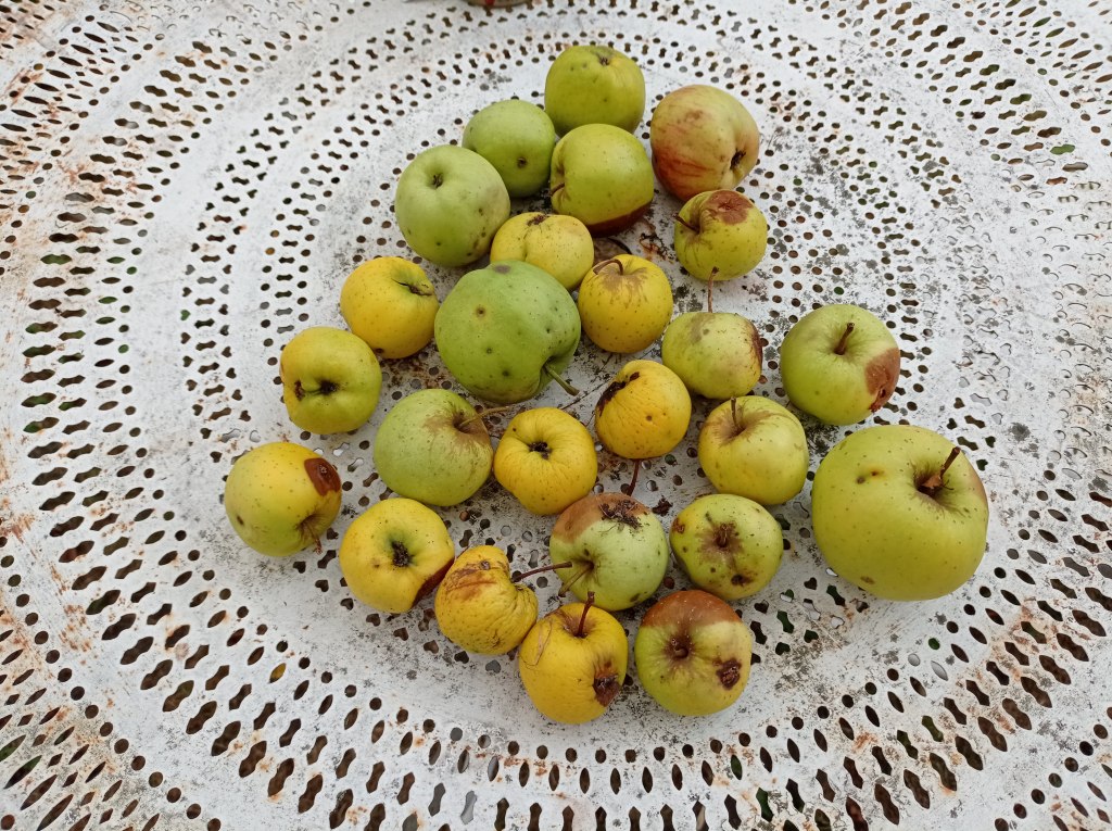 Le pommier de mon jardin a énormément donné cette année, et je me trouve devant une montagne de petites pommes à ramasser … plus qu’il ne m’en faut.